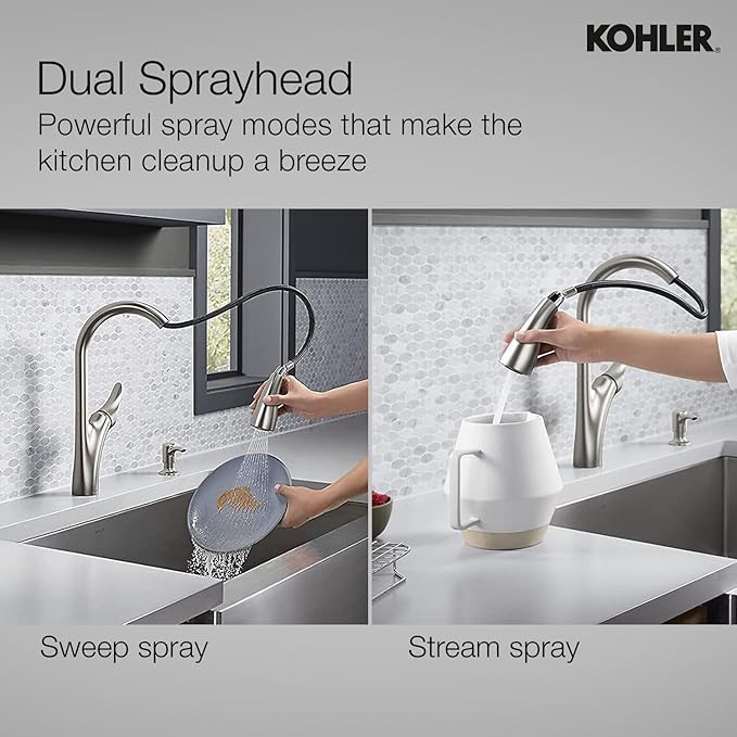 Kohler Emile 26448IN-4-VS Metal Pull-Down Sprayer Kitchen Faucet With Pullout Shower (Vibrant Stainless Steel Finish)